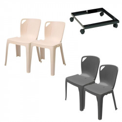 Les chariots pour chaises empilables sont équipés de supports qui permettent d’empiler plusieurs chaises les unes sur les autres pour en faciliter le transport et le stockage.